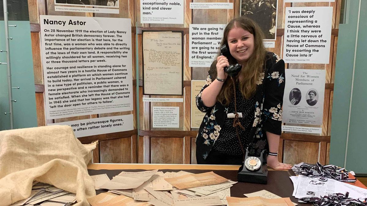 Reading’s two-way collaborative teaching process and unique opportunities helped Abbie’s confidence in developing her own theories and informed critical analyses. During her second year she worked with Dr Jacqui Turner to research and support the organisation of Vote100, which celebrated the centenary of the first women being granted the vote in Britain and found her second passion, academia.